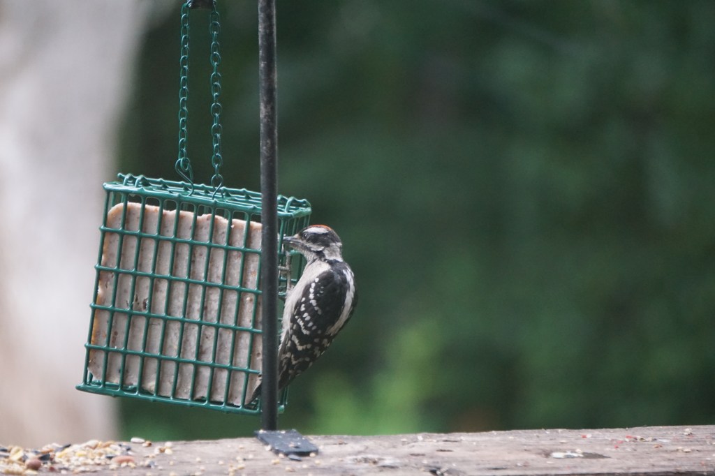 A scientist at MIT, Lorna Gibson, investigated that question. She looked into the impact that decelerating forces had on the brain when the woodpecker pecks into a tree, similar to a car crash victim suddenly decelerating on impact with a stationary object. She found that the woodpecker’s smaller size brain, the caudal orientation (brain facing backwards), and the short duration of impact of each peck hitting at 15mph, allows the woodpecker to tolerate forces 64 times greater than a human without injury! Now that is impressive. Learn more here: https://academy.allaboutbirds.org/built-to-peck-how-woodpeckers-avoid-brain-injury/