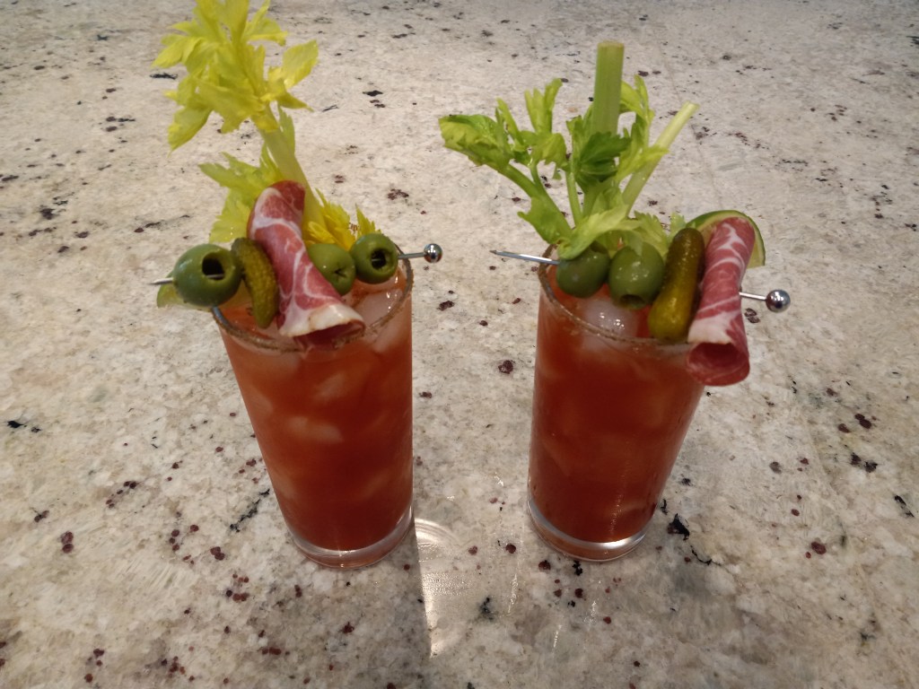 In this special Canada Day edition of BB&B, I will be concocting my first (Bloody) Caesar, the “official” cocktail of Canada. Similar to a Bloody Mary, it incorporates clam juice into a mixture of tomato juice, vodka, lime, and spices/sauces with garnishes of your choosing. The Caesar was invented in 1969 by a restaurateur named Walter Chell in Alberta, Calgary to accompany Italian dishes. The original recipe did not include hot sauce, but this is generally accepted as part of the recipe today. You can alter the sauces and quantities to your taste (I happen to be a huge Worcestershire fan). The inventor also admitted to using a dash of oregano as his secret ingredient, so I have elected to throw it in here.