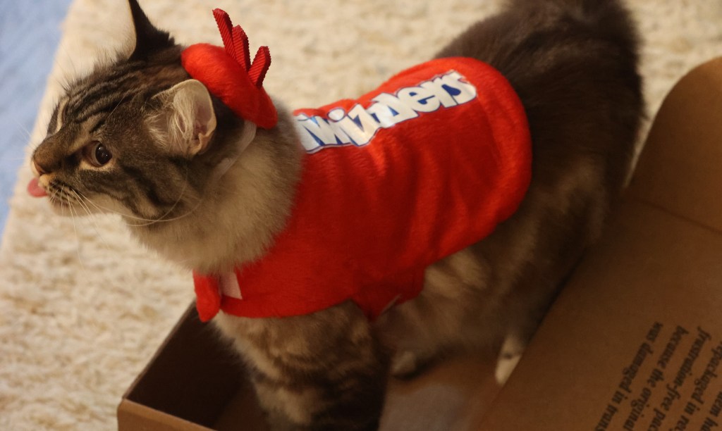 Happy All Hallow’s Eve to one and all! Halloween to me is the start of the fall season of festivities, of decorating the house and celebrating with family and friends. Our pets get into the fun too: instead of bird pics this week, I tormented my pets with playing dress-up. See what feline cuteness we came up with here with the candy cats and my scary House of the Dragon’s Meleys.
